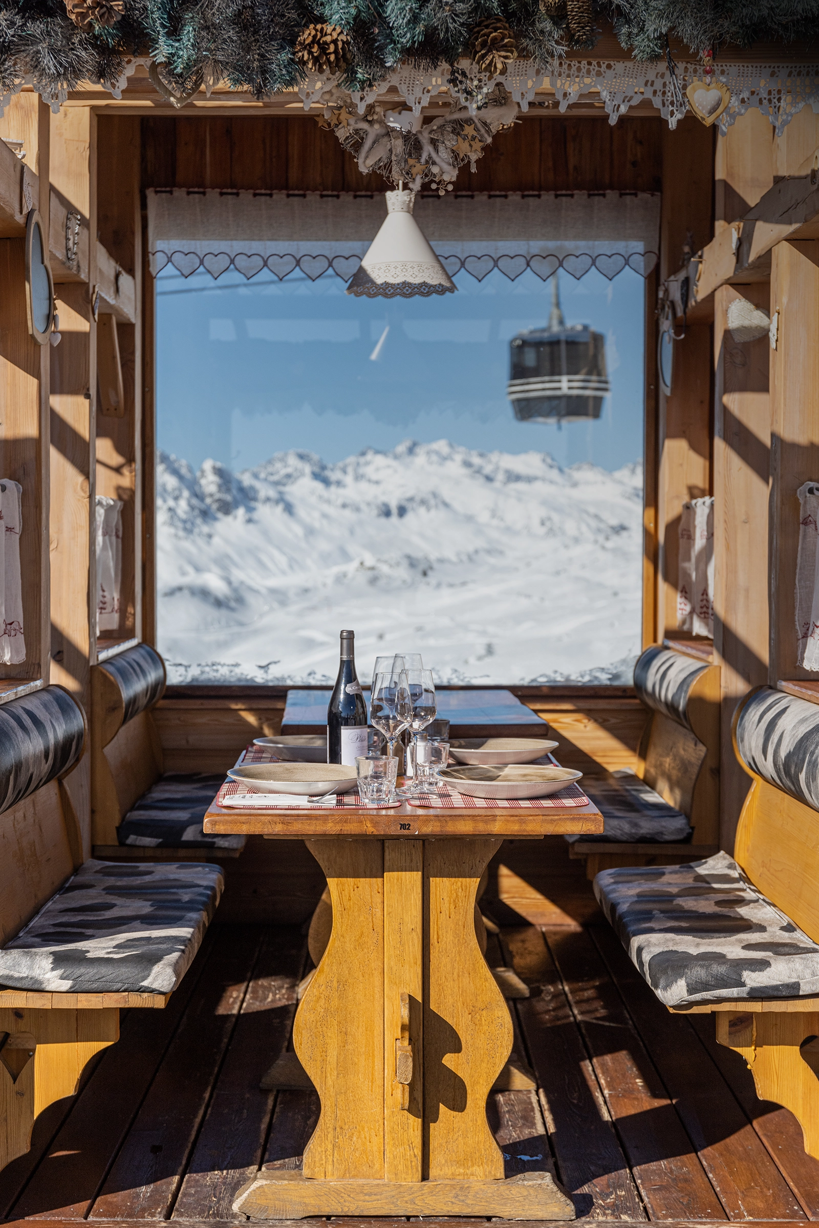 Un espace chaleureux dans un restaurant à l’Alpe d’Huez, idéal pour vous accueillir en famille, entre amis ou en grand groupe. Au coin de la cheminée, face à la vue ou au solarium, profitez de toute la place qu’on vous offre !